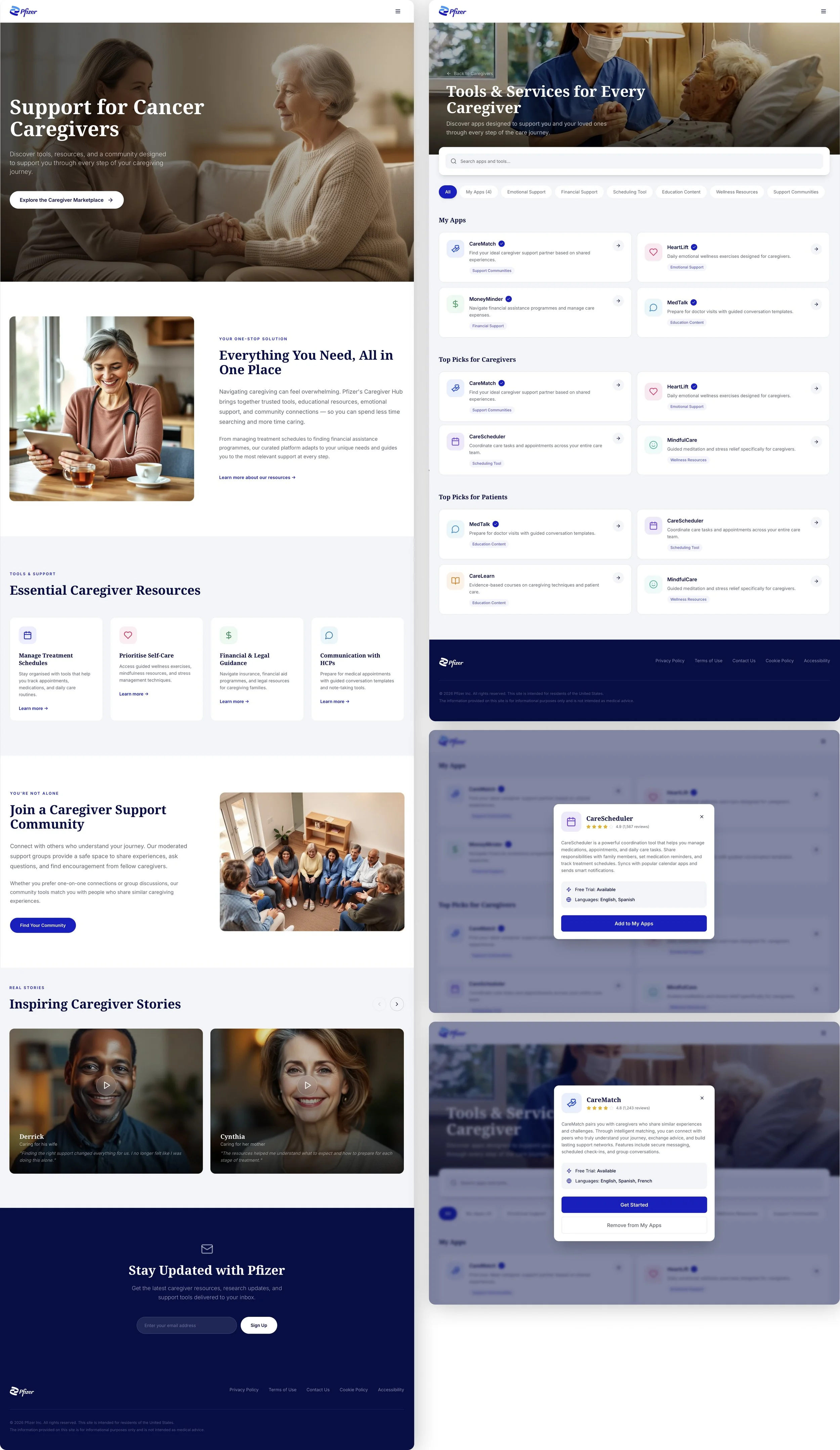 Rapid R&D discovery to understand the oncology caregiver space, identify unmet needs and translate them into high-impact, testable concepts. We prioritised four opportunity areas, created four end-to-end concepts and validated them with caregivers. Two concepts progressed into real Pfizer initiatives.