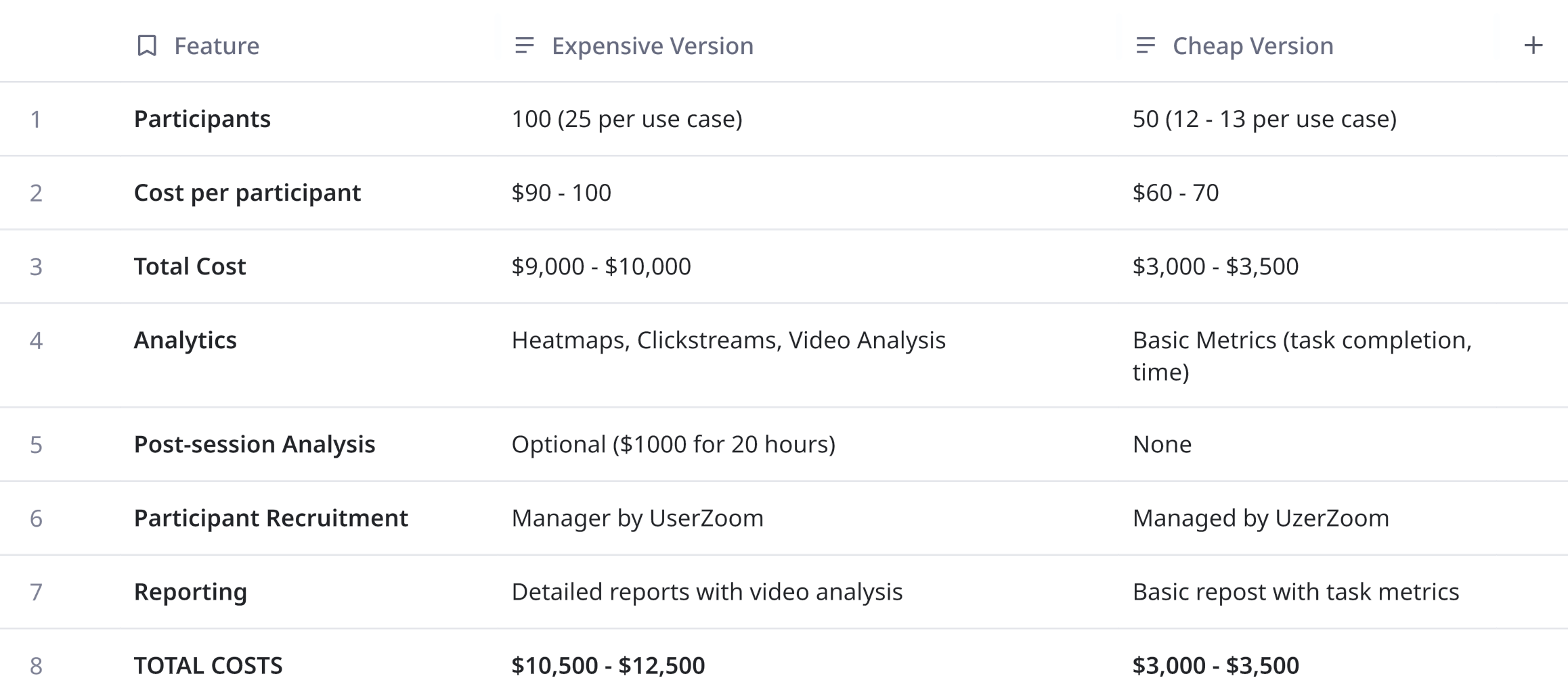 UzerZoom Costing